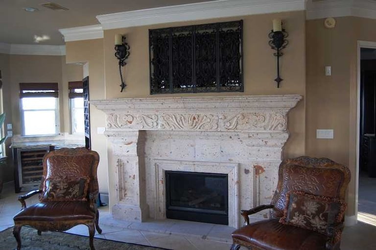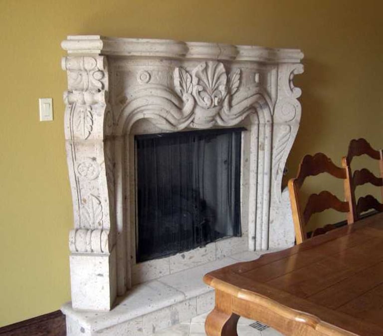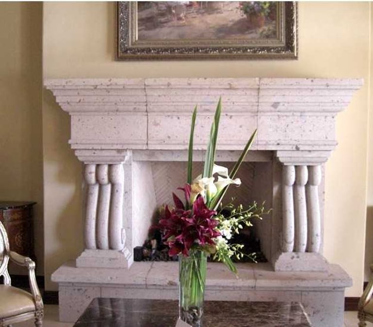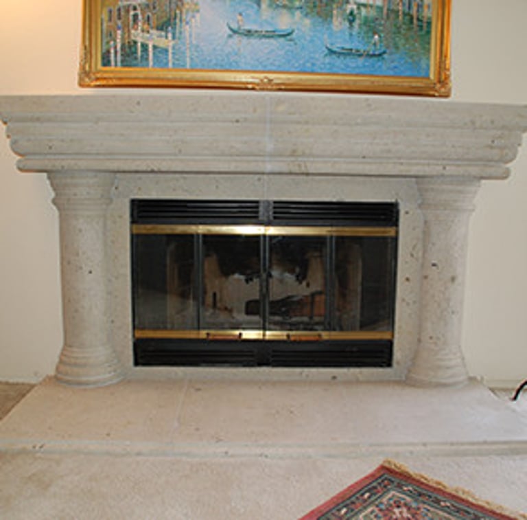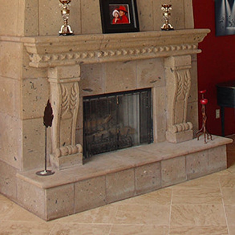 Stone Mantels are 100% natural stone and we can make your mantel to fit your dimensions and color preferences. Your surround will include the Mantel, Columns, and Hearth.