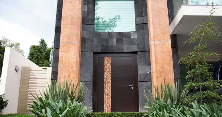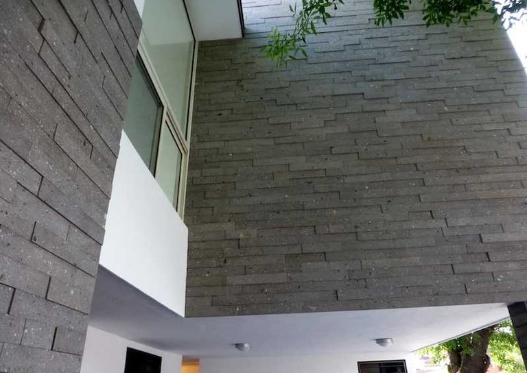 Beyond its resistance and performance, cantera adds depth, texture, and a refined presence that immediately elevates any property. Its natural color variations and hand-crafted finishes create a distinctive look that cannot be replicated by synthetic materials. Whether used for full cladding, accent walls, columns, or decorative details, cantera transforms facades into timeless statements of quality and craftsmanship.