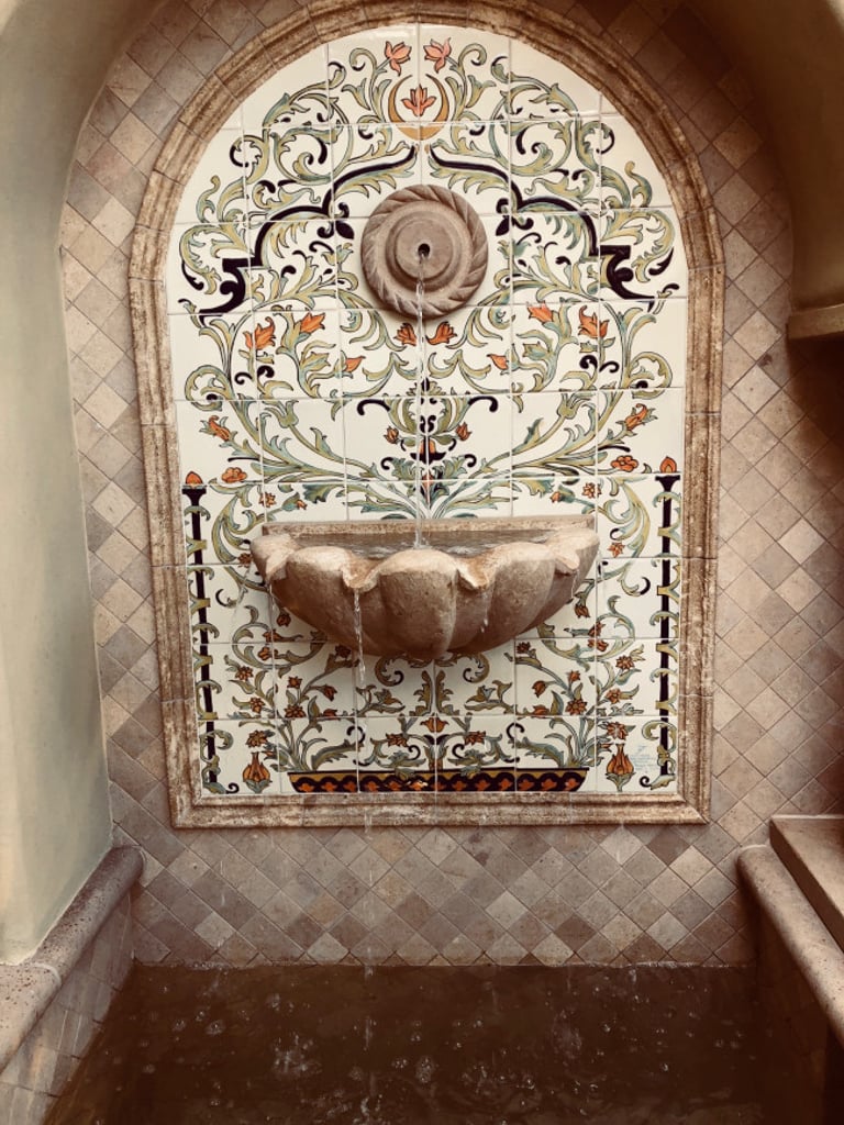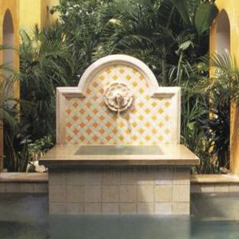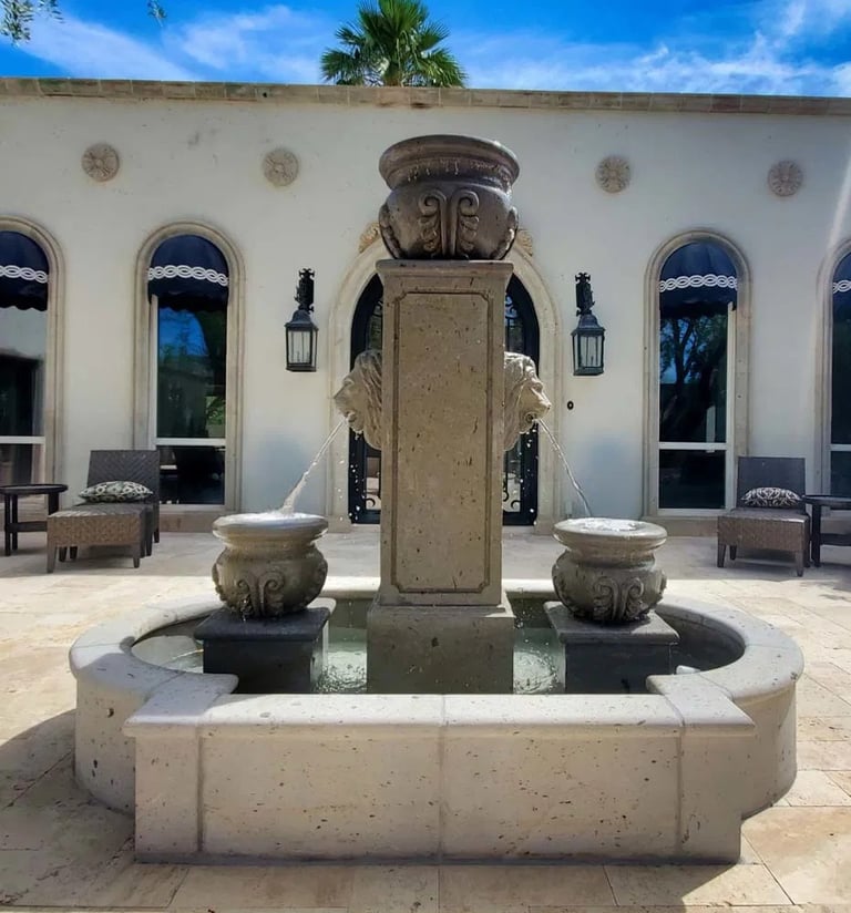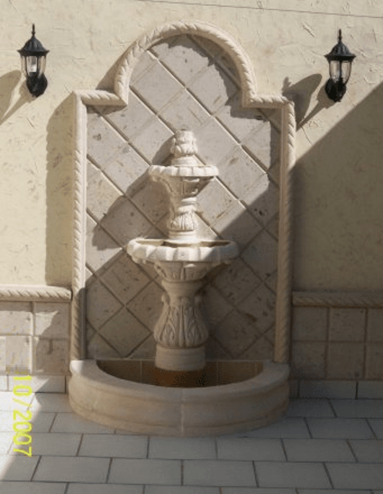 Cantera Fountain. Comes with multiple tiers and a base wall for pool area.
