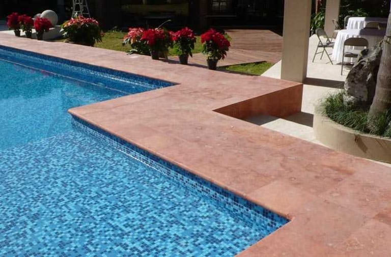 Mexican cantera stone is an exceptional choice for pool areas, combining natural beauty with practical performance. Its naturally slip-resistant texture makes it ideal for pool decks and coping, providing added safety without sacrificing elegance. The stone remains comfortable under the sun and blends harmoniously with water features, landscaping, and outdoor living spaces.